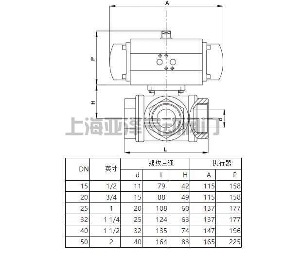 螺紋絲扣氣動三通球閥 參數(shù)